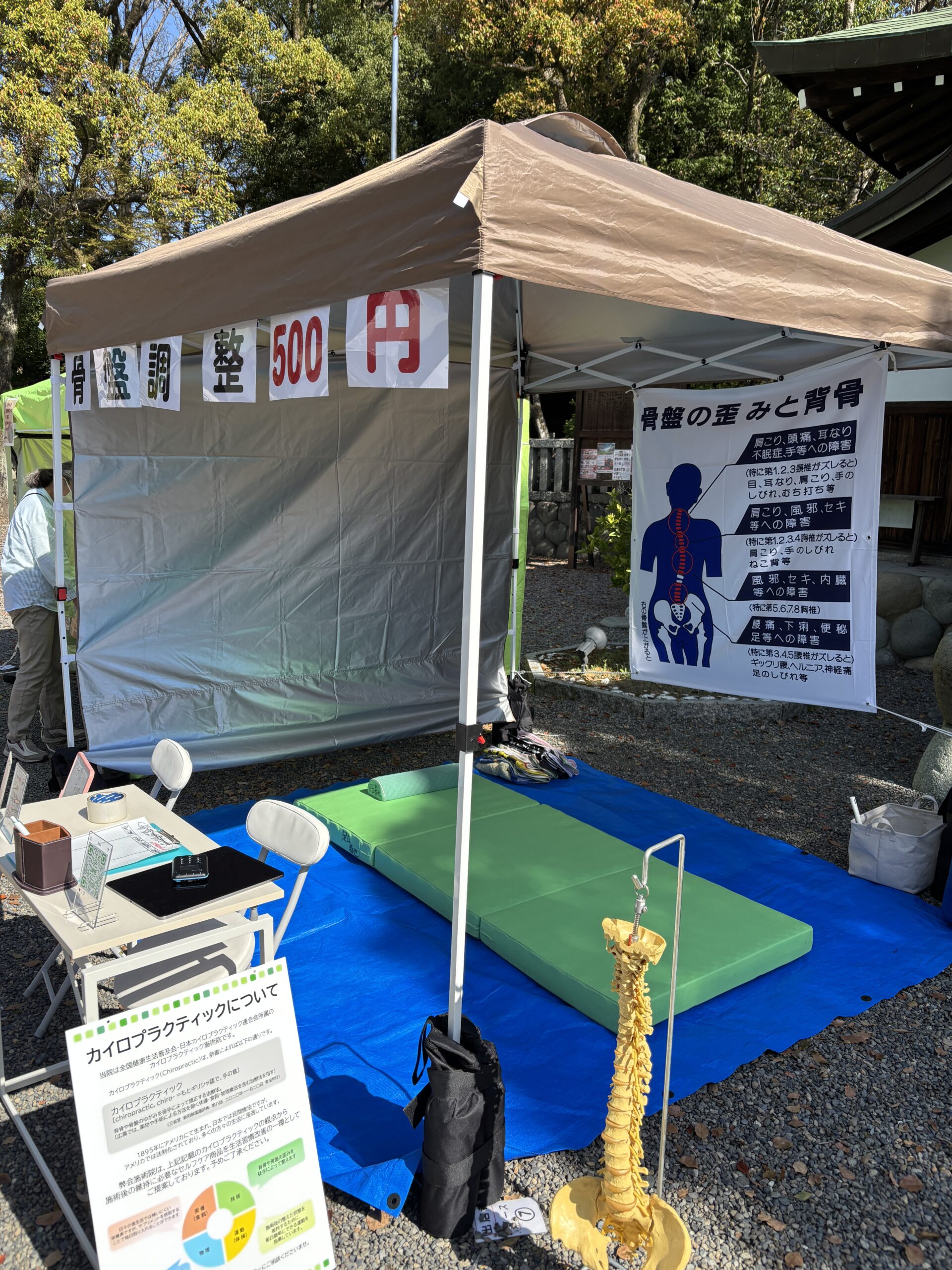 スタート直後から最後まで、ほとんど休む暇もないほど施術が続き、多くの方にカイロプラクティックによる骨盤矯正や姿勢チェックを体験していただきました。